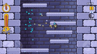 To make it up the tower, you need to get into a rhythmic jumping pattern. After building up some speed, you have to jump and bounce between platforms never lingering in one place for more than a second. Once master this, you can keep jumping up platforms back and forth without worrying about hitting the walls.